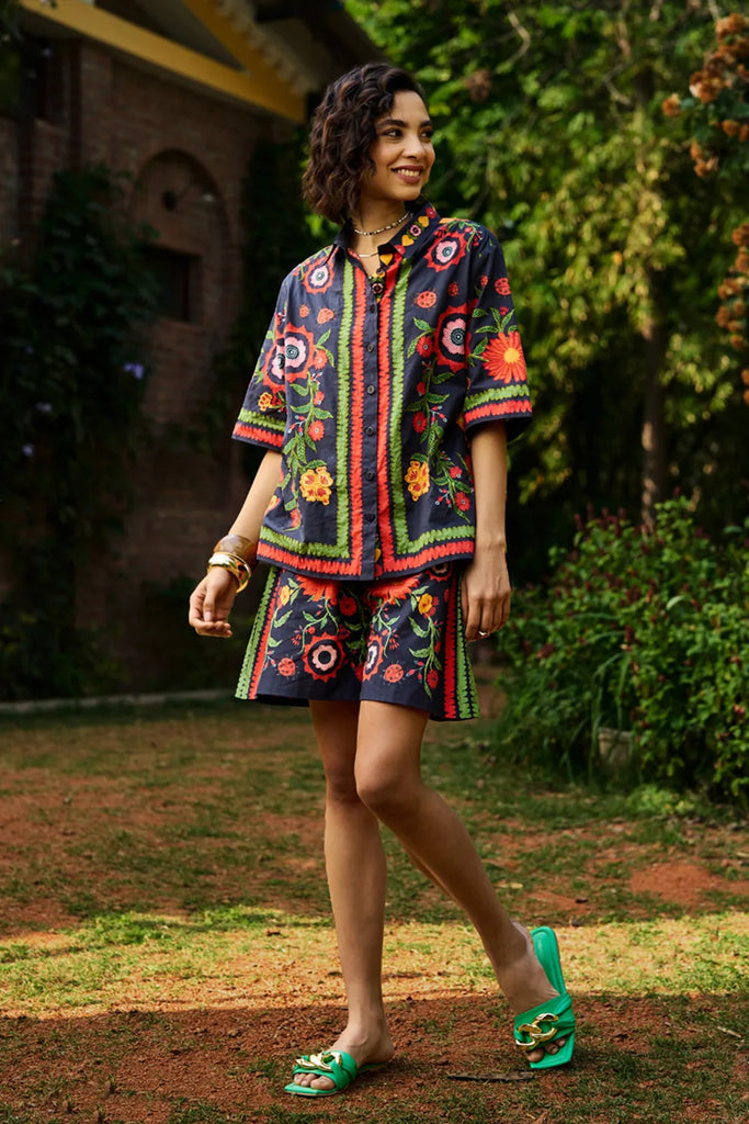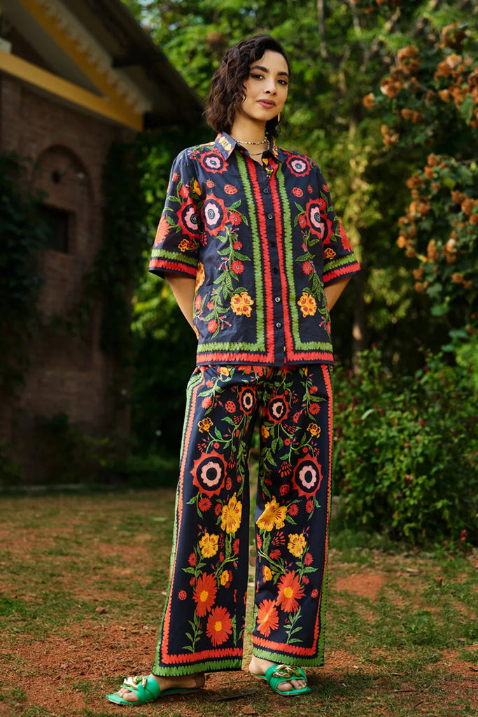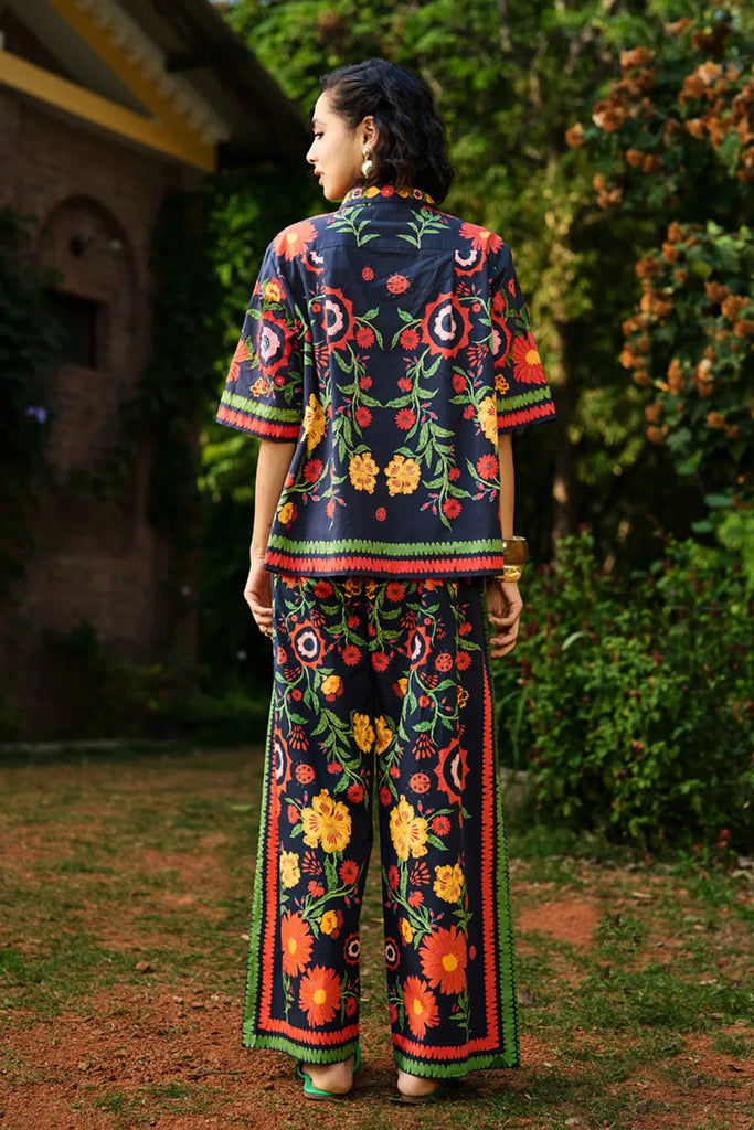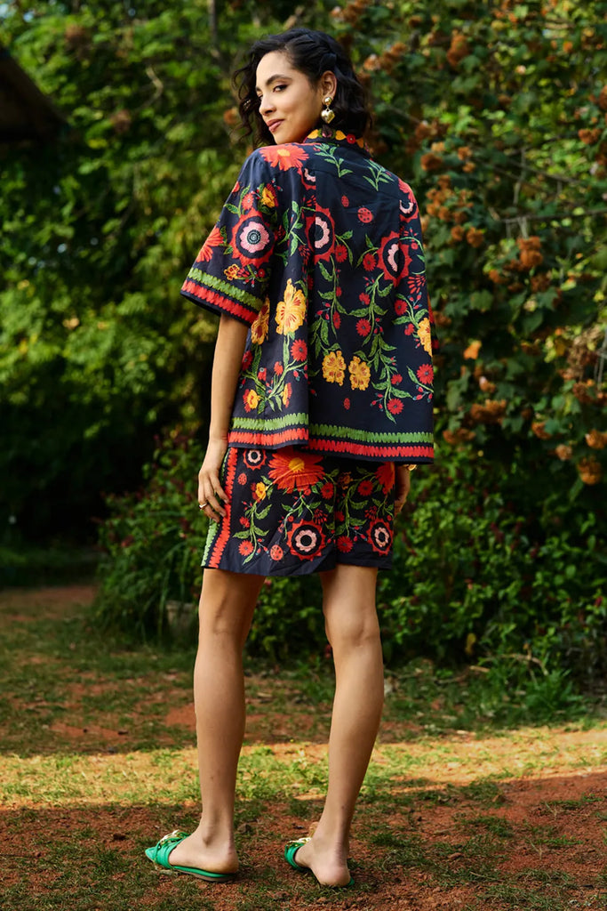 This one-size black embroidered shirt with slouchy shoulders exudes effortless elegance. The delicate embroidery adds a unique, artistic touch, while the relaxed fit creates a flattering, contemporary silhouette. A statement piece perfect for elevating your everyday style.