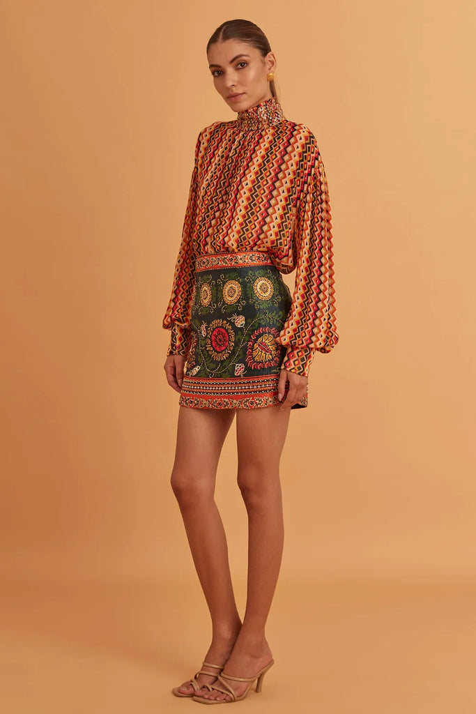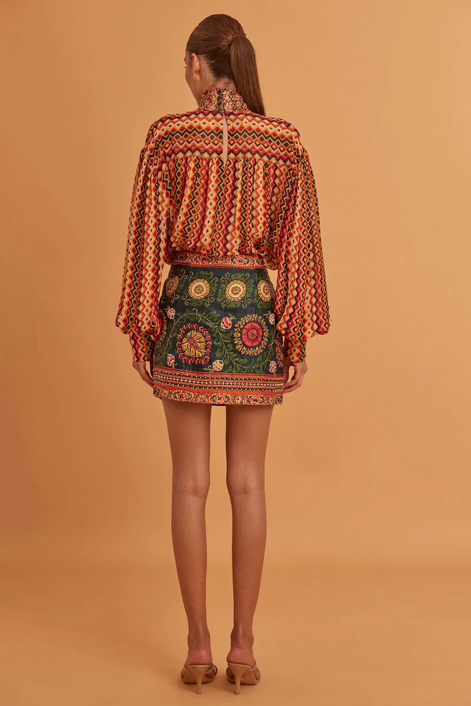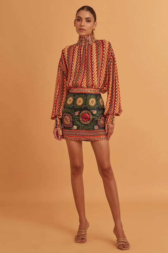 Stand out in our Barbara Smocked Neckline Blouse with Sequence Detailing in vibrant orange viscose georgette. This blouse is perfect for holiday adventures, adding a touch of elegance to your look.