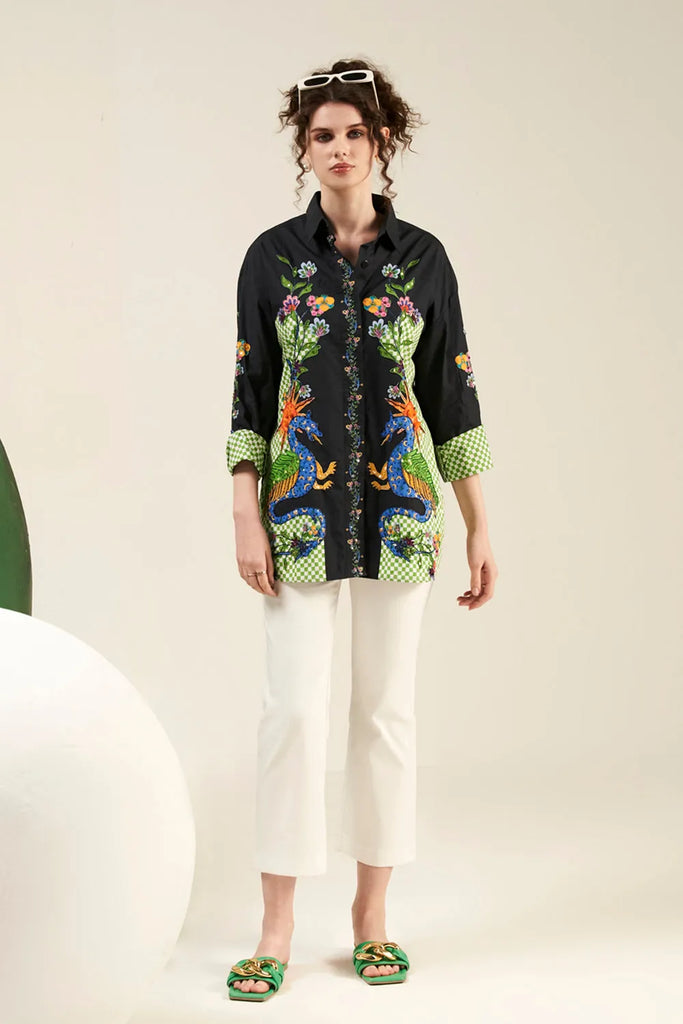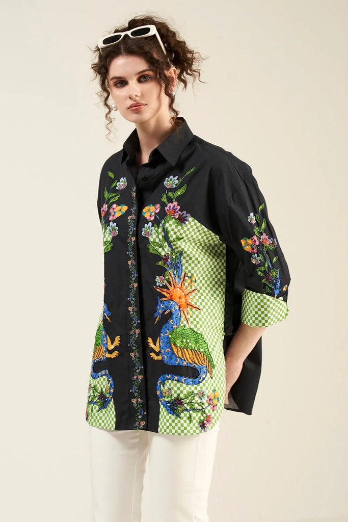 Get your swag on in this black checkered shirt featuring Verb's signature animal print with thread, beads and sequin detail.