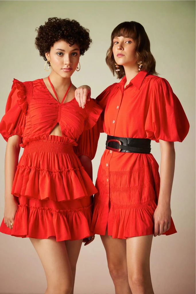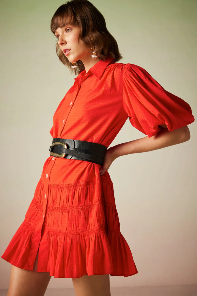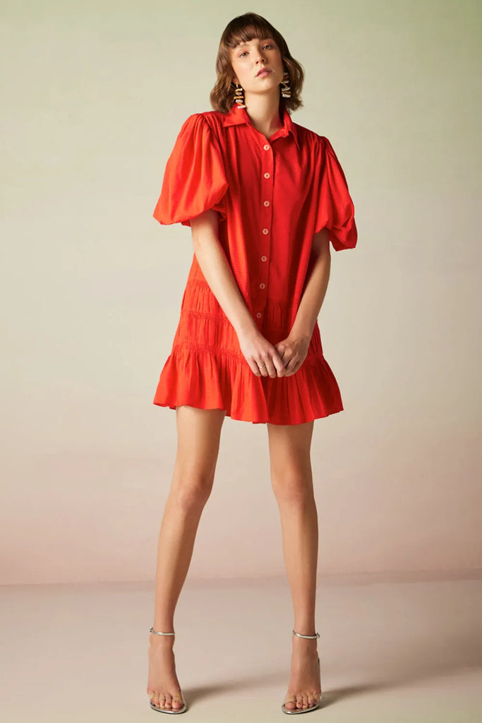 Stay chic and comfortable with the Verbena Mini dress. This red shirt dress in scarlet red offers a classic and versatile style. Made from polyester, it provides a comfortable fit for day-to-day wear or a casual holiday outing. Pair it with your favorite accessories to create a stylish and effortless look.