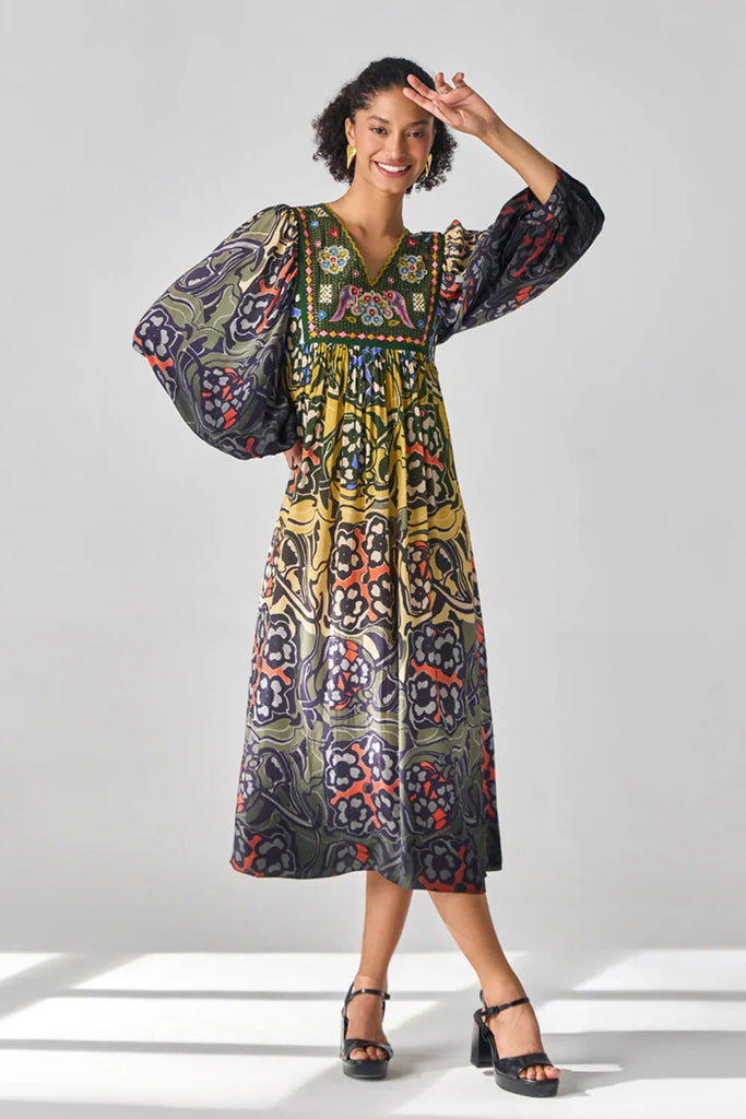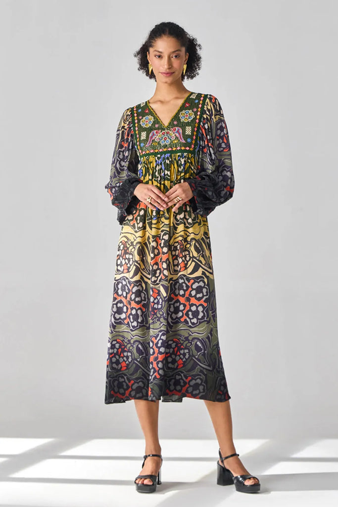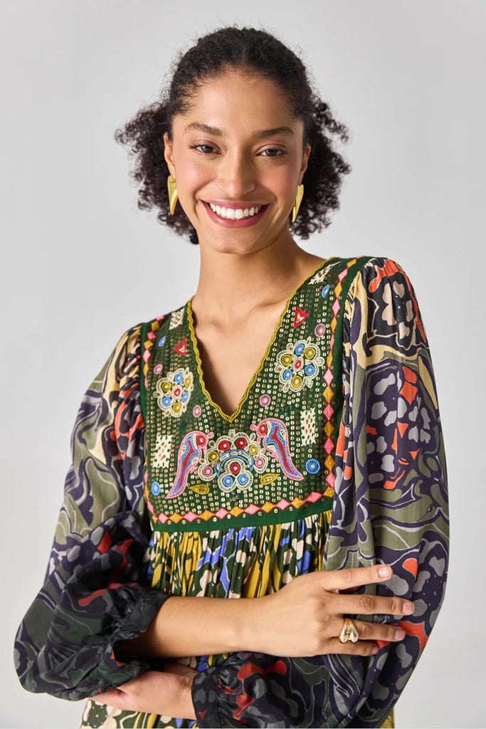 Find your rotational favourite in this ombré-printed Lado dress, featuring intricate thread and sequin detailing on the yoke. The gradient hues and subtle sparkle make it perfect for both day and evening wear.