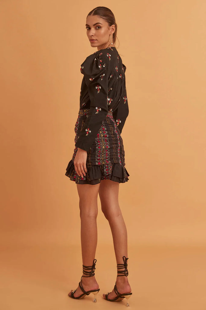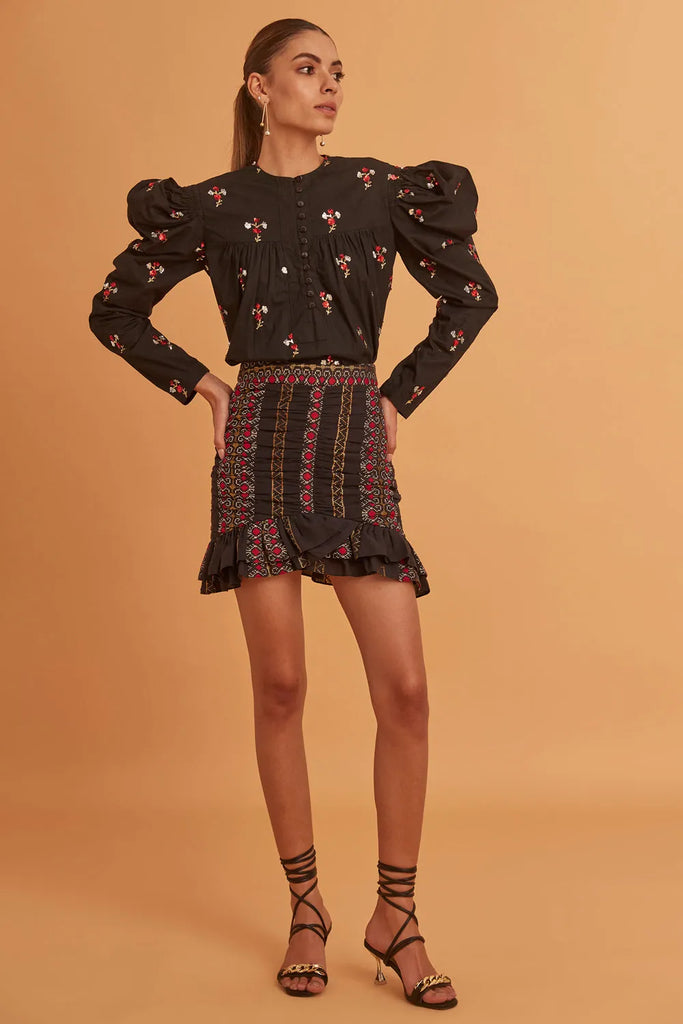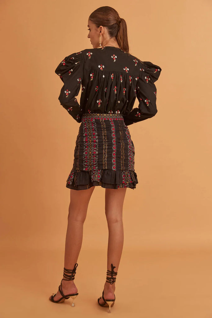 Make a statement at the party with the Simantha Blouse. The black cotton poplin fabric is adorned with intricate sequin detailing, adding a touch of sparkle and sophistication. This blouse is perfect for pairing with your favorite bottoms and is sure to elevate any outfit. Embrace your inner fashionista and let this blouse shine at your next event.
