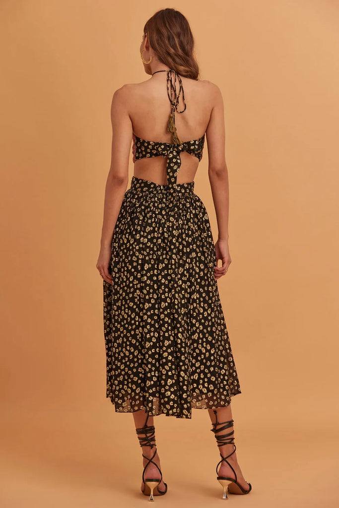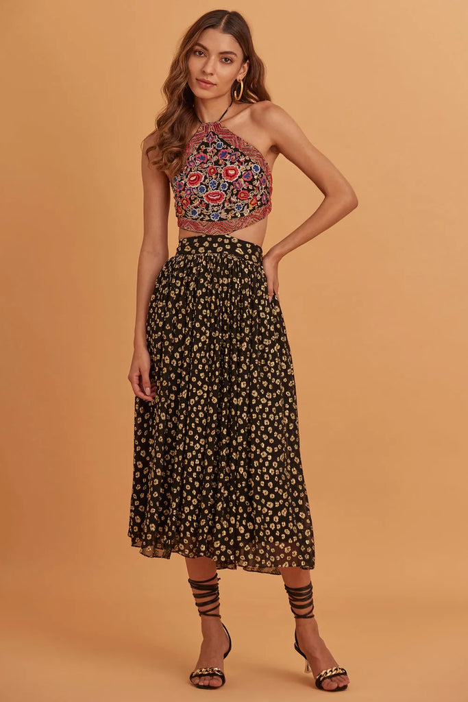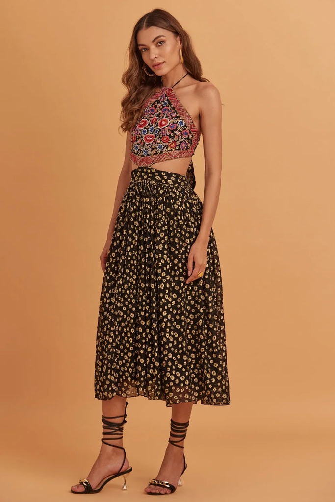 Opt for a unique and stylish look with our Taylor Beaded Embellished Dress with Waist Cutout and Lurex Skirt in chic black viscose lurex georgette. This dress ensures you look glamorous and party-ready.